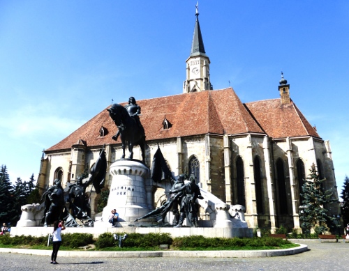 Auf dem Marktplatz ist der alte Dom beherrschend. Vor dem Dom das unvermeidbare Reiterdenkmal. Noch ein kleines Stück vor dem Reiterdenkmal von König Mattthias kann man durch eine Glasplatte römische Fundamente bewundern. Sie sind wenig spektakulär, verdeutichen aber, daß Cluj-Napoca eine sehr lange und wechselhafte Geschichte hat. An der gegenüber des Domes liegenden Seite des Platzes befindet sich in der Fußgängerzone die Tourist Information für die Stadt. Die Tourist Information für die Region hat ihren Sitz im Ethnologischen Museum ganz in der Nähe.