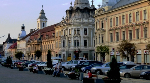 Bei der Einfahrt nach Cluj-Napoca bietet sich ein Bild wir in vielen anderen europäischen Städten. Die Besiedelung verdichtet sich, Einkaufszentren und Autohändler ziehen sich am Straßenrand entlang. Dann schließt sich der Ring mit Wohnbebauung, überwiegend Plattenbauten, an. Schließlich erreicht man in die Innenstadt.